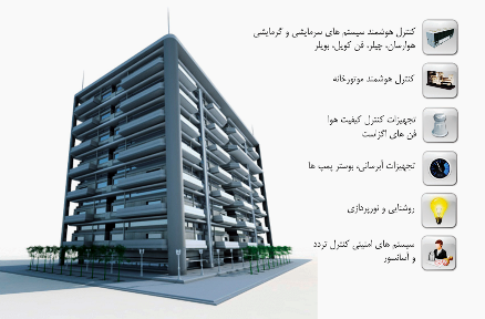 کنترل دما و تهویه (HVAC): سیستمهای هوشمند امکان تنظیم خودکار دما و رطوبت در هر بخش از ساختمان را بر اساس نیازهای فعلی فراهم میکنند. این کنترل باعث صرفهجویی در مصرف انرژی و افزایش راحتی کارکنان میشود.